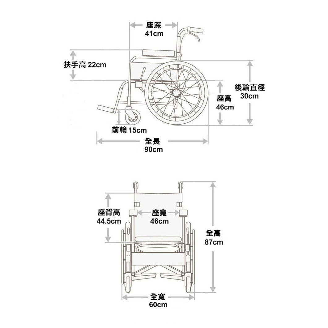 - 小後輪設計,節省儲物空間,適合由他人推動的用者
